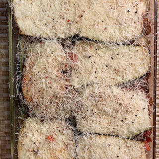 8. Cubre tu capa final con el queso parmesano y ponle una pizca de pimienta por encima.